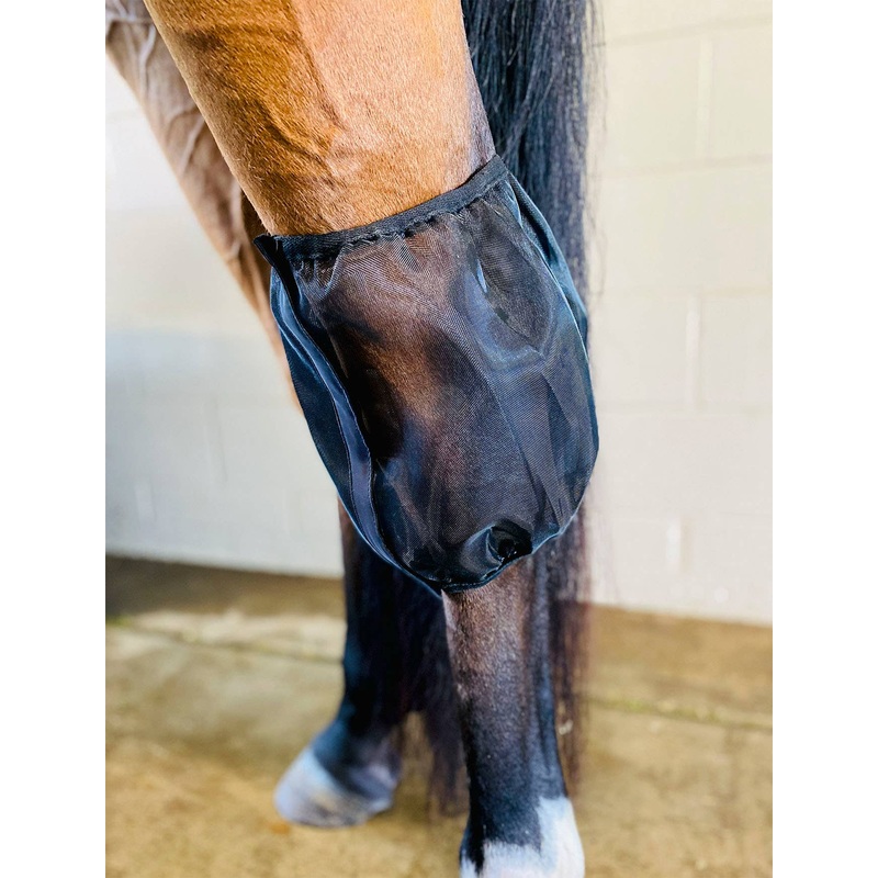 Rubs? Wounds? Post-surgery?The Com4rt Mesh Hock Nets provide a great alternative to neoprene hock boots and constant bandaging. They shield the hock area from flies, shavings, hay, etc. while allowing airflow during the healing process.- Made from lightweight mesh material to allow airflow during healing.- Full length hook and eye closure to keep flies and debris out.- Elastic top and bottom for comfortable and secure fit. – OSFM (Horse Sized)- Black- Sold as a pair. – Intended to be worn 6-8 hours daily as needed. Because of elastic, we do not recommend 24/7 wear. -Veterinarian Approved*If horse is post-surgery, please consult your vet for instructions on when this product would be appropriate to begin using.