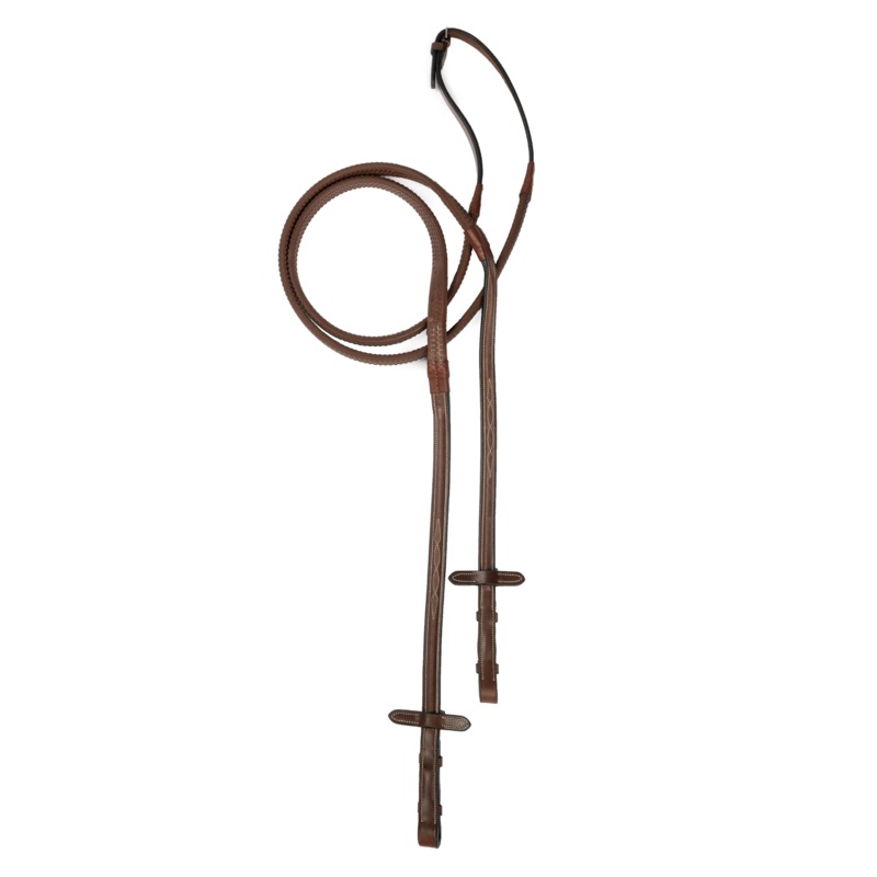 One of ADTs most popular reins, these Laced Reins are raised & accented with white Fancy Stitching (made to match Imperial, Starman, and Tribute bridle styles). Reins feature stainless steel stud (SSS) ends. Available in Brown.