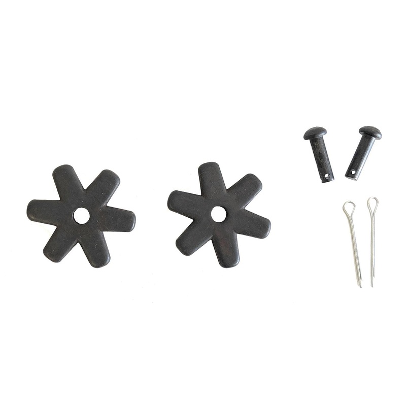 This package include one pair of black steel spur rowels, two spur pins and two cotter pins
