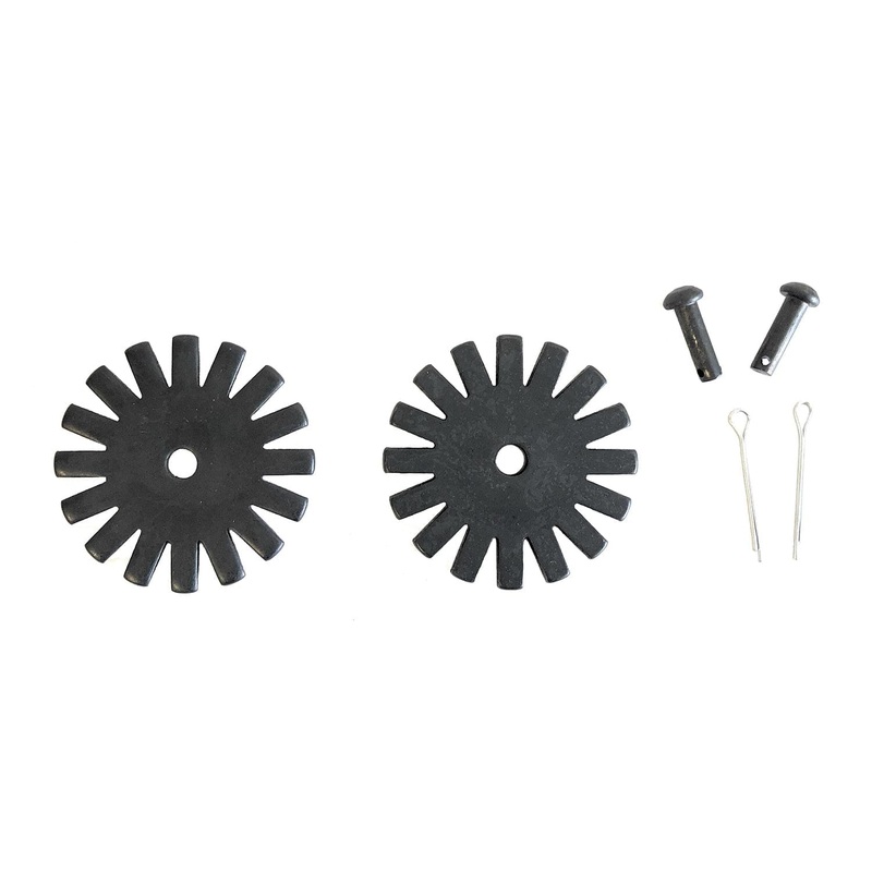 This package include one pair of black steel spur rowels, two spur pins and two cotter pins