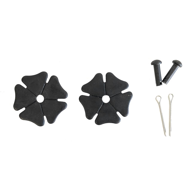 This package include one pair of black steel spur rowels, two spur pins and two cotter pins