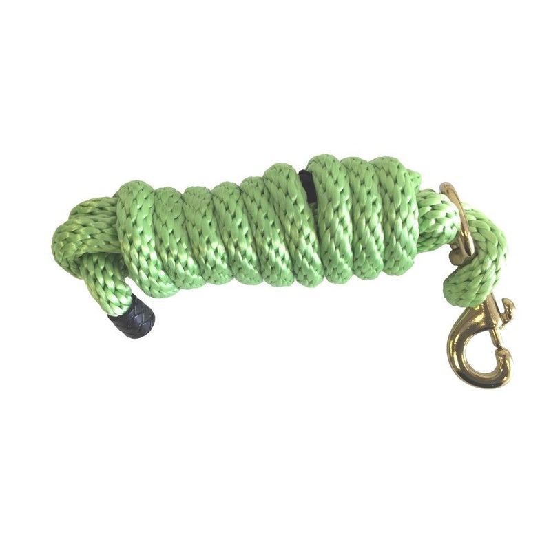 The AJ Tack 8 1/2-Foot Poly Lead Rope is a reliable and comfortable choice for handling your horse. Made from durable, heavy-duty polypropylene, this braided lead rope offers strength and longevity while remaining soft and easy to grip. It features a replaceable brass-plated bolt snap for convenience and a rubber cap end for a classic touch. Ideal for daily use, this lead rope provides a secure, comfortable connection between you and your horse.