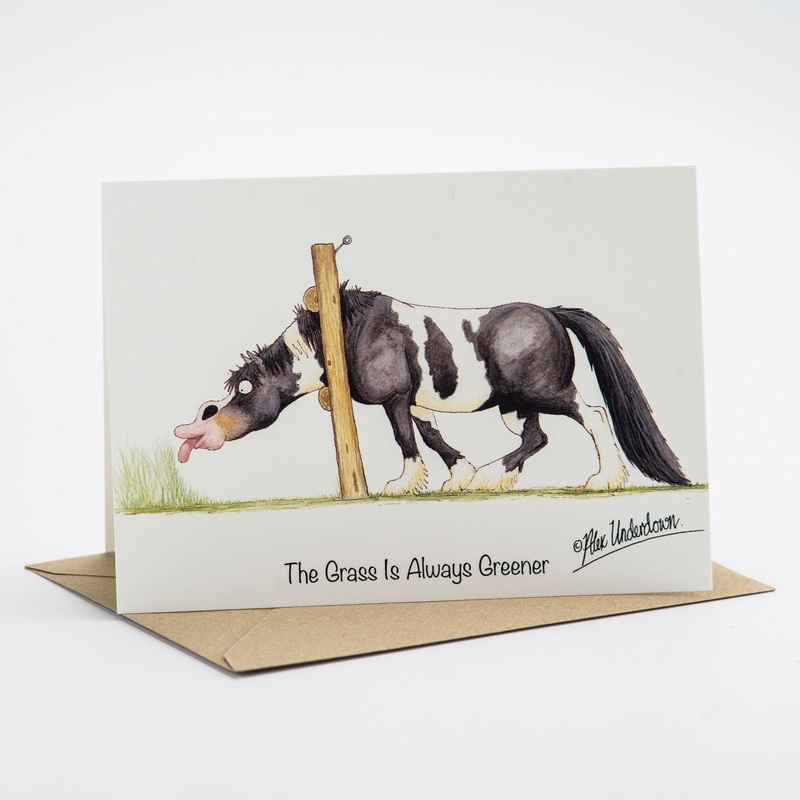 Introducing an exclusive collection of 18 exquisite equestrian greeting card designs, brought to life by the masterful talents of renowned artist Alex Underdown. Immerse yourself in the captivating world of horses and riders through their whimsical and captivating artwork, capturing the essence of the equestrian spirit. Printed with utmost precision and care in the United Kingdom, each 5″x7″ inch card is a testament to artistic finesse and creative expression. Blank inside.
