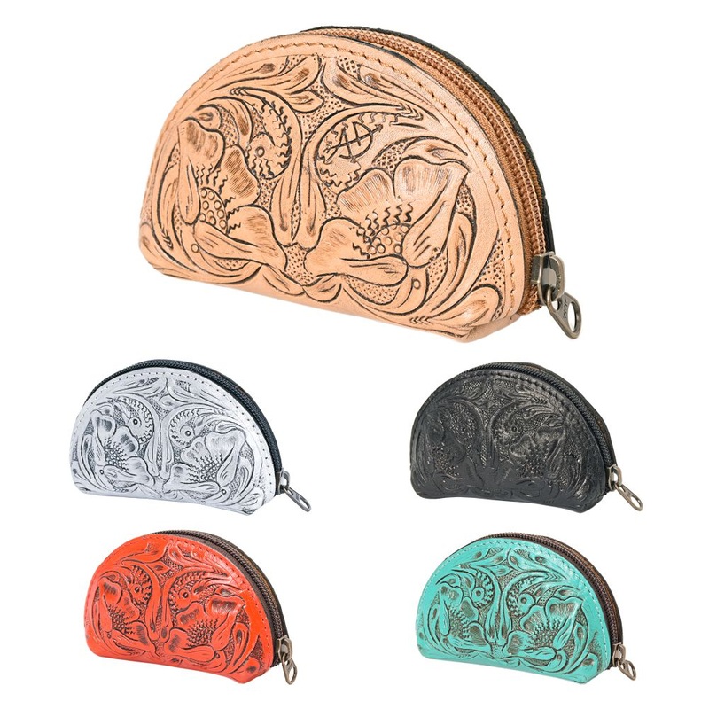 • PREMIUM QUALITY MATERIAL: This is a handmade American Darling women’s coin purse made with a detailed Western theme Hand tooled, carved, and Eco-friendly vegetable-tanned American Genuine Cowhide Leather. It is exquisitely done by the finest craftsmen in the country. Our leather coin purse is perfect for outdoor events, travel, shopping, or daily use. Available in size: 3in (H) X 4in (W) X 1in (D).