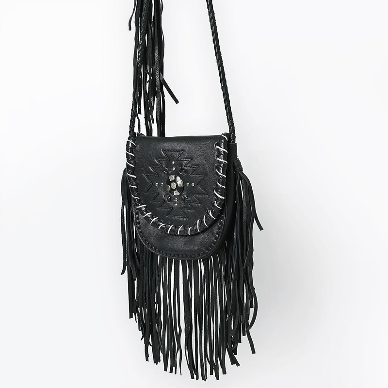 • FEATURE-: This Western handbag is adorned with beautiful genuine leather fringes, giving it an authentic Western look. This handcrafted leather bag includes an adjustable genuine leather shoulder strap for personalized comfort and highly durable solid antique finish metal fittings. The genuine YKK brand zipper closures ensure the security of your essentials. Available in size: 8in (H) X 10in (W) X 2in (D).