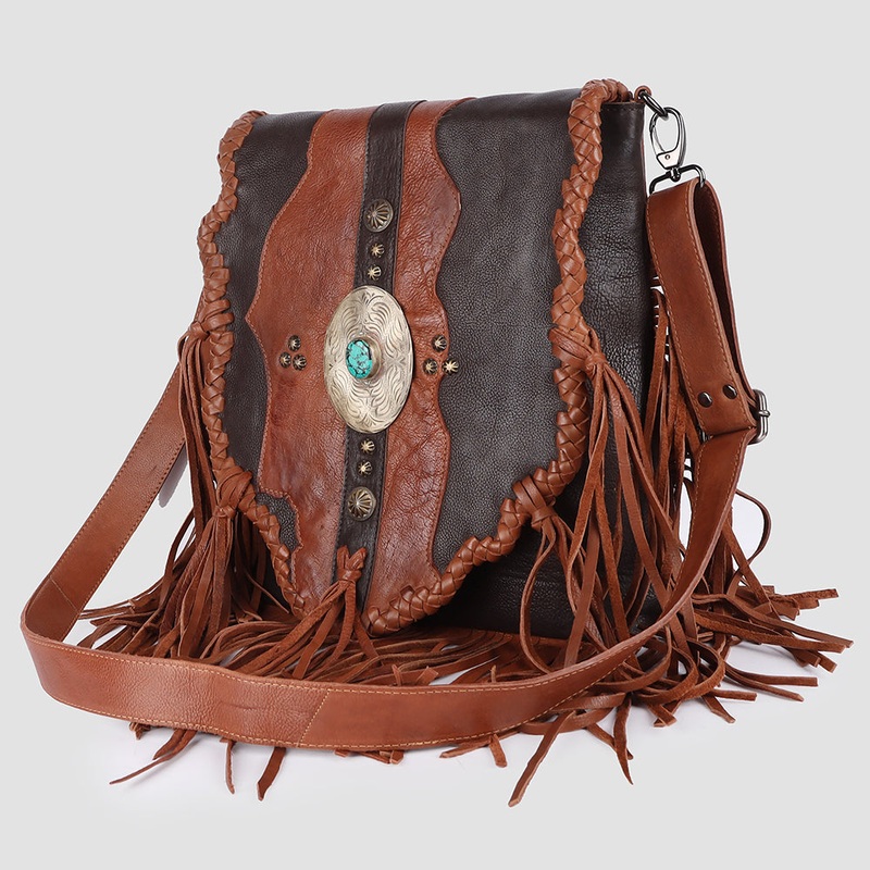 • PREMIUM QUALITY MATERIAL: This is a handmade American Darling women’s crossbody bag made with soft and supple handpicked Genuine Cowhide leather. High Quality Soft and supple Eco-friendly Vegetable tanned full grain Genuine leather is also used to make this handbag that ages beautifully as it wears. Our crossbody bags are complemented with a beautiful leather fringe giving it a western look. Available in Size: 13.5in (H) X 13.5in (W) X 3.5in (D).