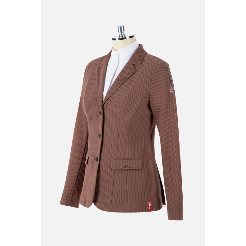 The LAMALA womens competition jacket, made from Star piqu fabric, combines elegance and technical performance, offering maximum comfort and freedom of movement. The Star piqu, with its next-generation weave, is lightweight and fresh to wear, providing optimal coverage thanks to its compact structure. The jacket is enhanced with tone-on-tone rhinestone embellishments on the collar, lapels, and pockets, adding a touch of refined elegance. The Star piqu is a lightweight, breathable technical fabric designed to provide comfort and high performance. Its perforated structure ensures optimal ventilation, keeping the skin cool even during intense activities. Its elasticity and durability allow the jacket to perfectly adapt to body movements without compromising style. Ideal for both sports and casual wear, Star piqu offers the perfect balance between functionality and cutting-edge design for a dynamic and comfortable look. Garments made from Star piqu are lightweight and fresh, with a texture designed to offer maximum comfort and freedom of movement while maintaining sufficient coverage.