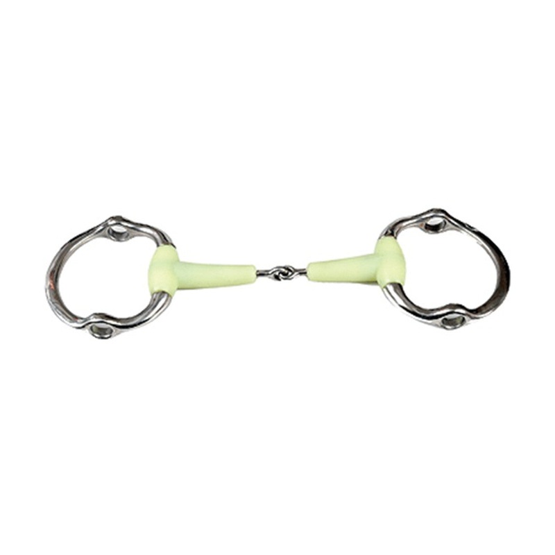 Bit with stainless steel rings with holes and apple flavored jointed mouth.
