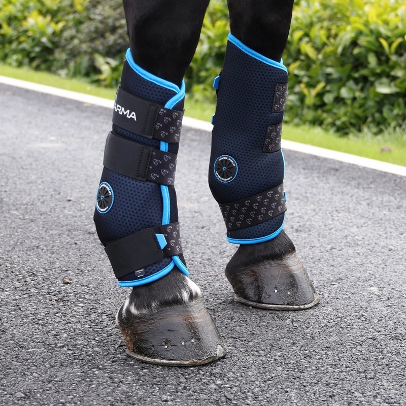 Creating the right environment for optimum condition and healing, ARMA Magnet boots require no preparation, and can be used as part of a daily routine. The magnets can help to promote increased blood circulation in the legs which can improve oxygen supply to the tissues to reduce muscle tension and inflammation, aid recovery, remove toxins and improve general well-being. Each boot contains 10 permanent magnets evenly spaced either side of the leg, and each with a magnetic strength of 2800 gauss. The boots are made from breathable heat releasing fabrics and are suitable for use in the stable or while traveling. Key benefits: therapeutic, lightweight, use on front or hind legs, use as part of daily routine. Therapeutic uses: warm up and relax muscles after exercise, relieve muscle tension, aid relaxation, reduce inflammation, alleviate general stiffness, boost general wellbeing, support the body’s natural healing processes. Set of 2.