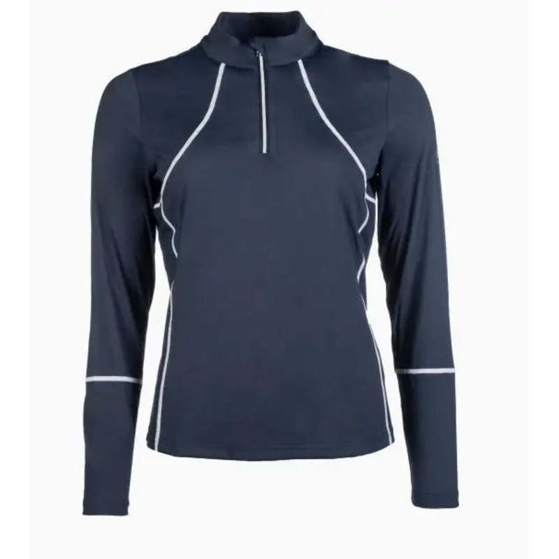 Aruba long sleeve sun shirt with tone on tone vented mesh on sides and back. A stretchy but fitted look with contrast reflective stitching. Matches Aruba saddle pads + ear bonnets.