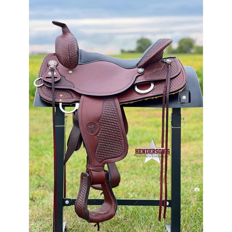 TheAshton High Country saddle features a traditional double skirted full skirt and low-profile horn, making it perfect for trail riding or arena performance events.