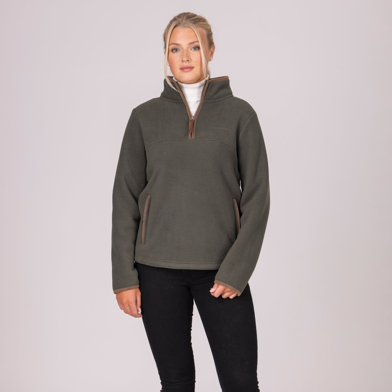 Warm and cosy, the Aubrion fleece pull-over feels like a great core addition to your outdoor wardrobe. Constructed in deep loft fleece with a sherpa lining and deep brown faux leather trim for a smart look. Gently contoured body with a high-line collar, 1/