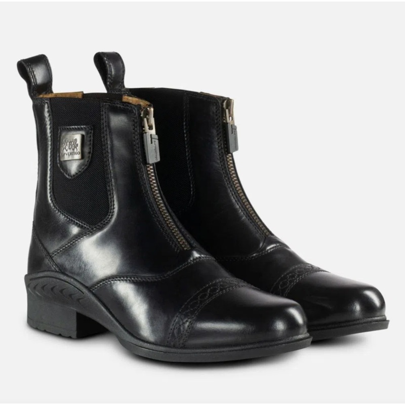 These jodhpur boots are made from ultra soft, high-quality leather, making them super comfortable and long-lasting. The durable sole and insole are ergonomically shaped and adapt to your foot perfectly. A front zip and elastic at the sides, spur rest and pull-strap make putting them on super easy. Functional quick-dry lining keeps your feet dry, whether you are in the saddle, stable and outside. Classic and easy!