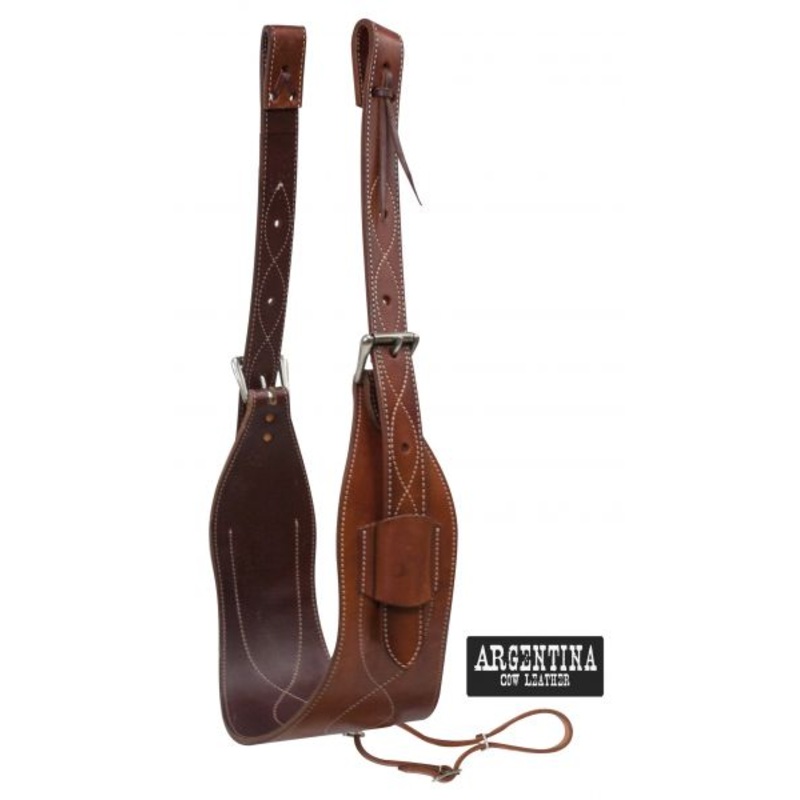 Showman 7″ wide contoured Argentina Cow Leather back cinch with roller buckles. This back cinch is contoured to the horse’s body and comes fully equipped with 3/4″ billet straps and girth connector. Roller buckles make this cinch easy to adjust.