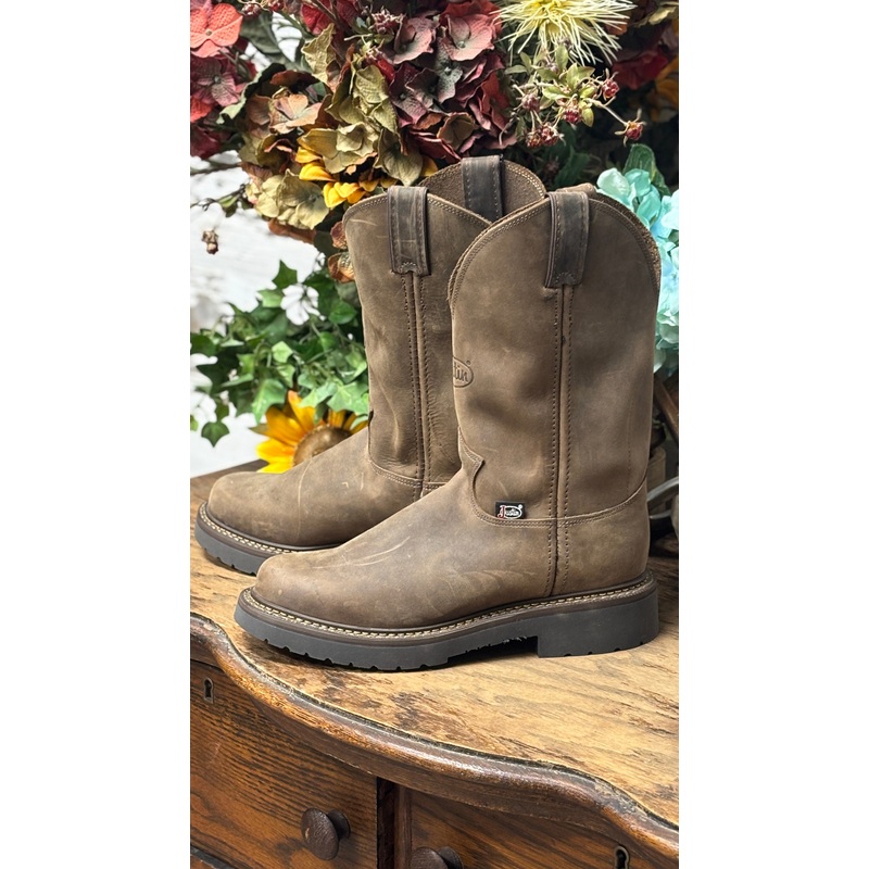 The Balusters Bay Gaucho, 11" tall J-Max men's pull-on work boot features a rich brown leather exterior crafted for durability.It's built for comfort with the J-Max Double Comfort System that utilizes a mesh spacer foot bed cover that provides extra comfor