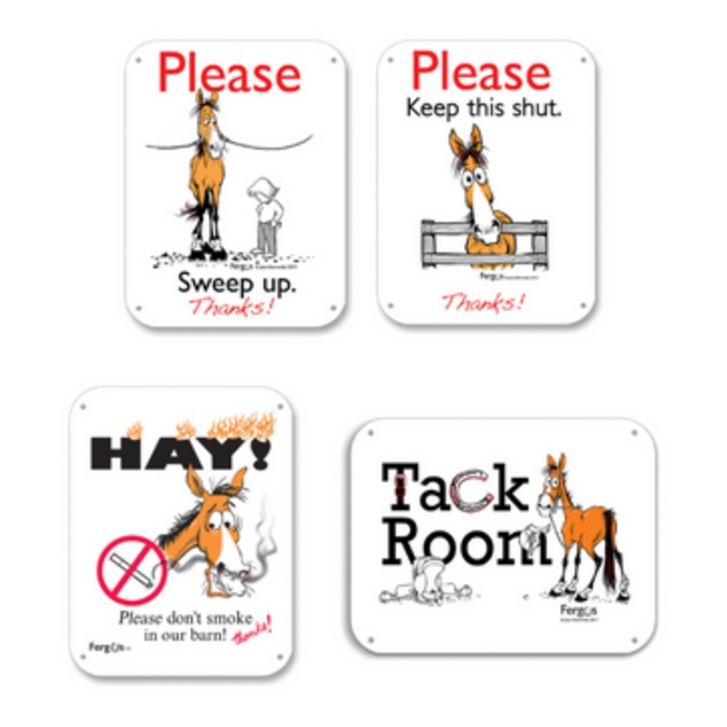 No one says it like Fergus! Allow Fergus to use his serious side to keep horses, riders, tack rooms and barns safe.Measures 8-1/2" x 11".