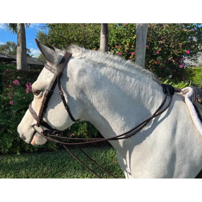 Draw reins sized for ponies and riders with smaller hands. Combination of soft leather rein with nylon rope cord and easy clip attachments.
