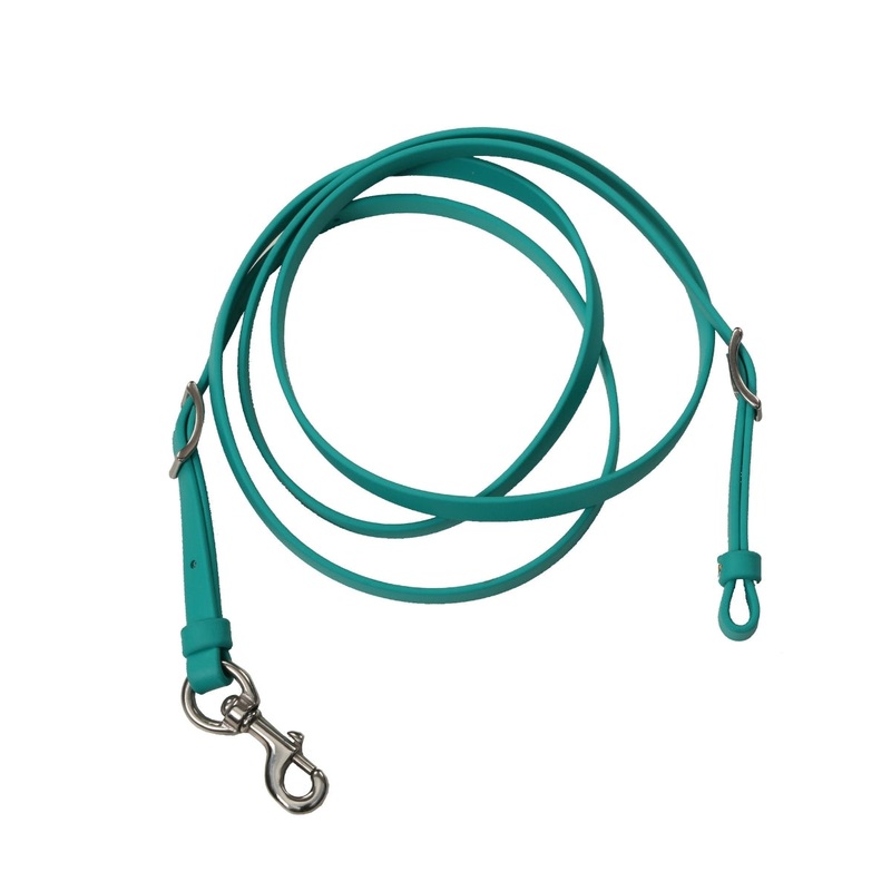 The BioThane Beta Roper Reins by Berlin Custom Leather Ltd. are made from durable BioThane that every horseowner needs in their tack room! BioThane makes cleaning your tack super easy, requiring just soap and water. Featured with a stainless steel swivel bolt snap on one end allows for quick and easy rein removal from the bit. The flexible and textured feel of the BioThane provides comfort and confidence in your reins during your ride!