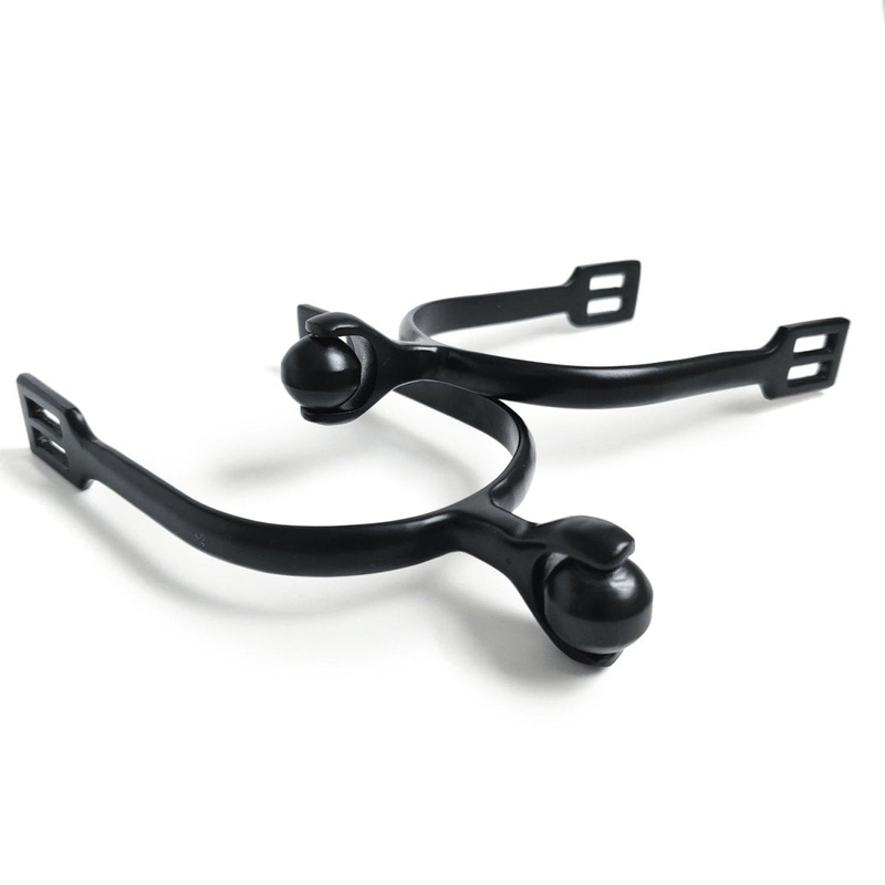 Stainless steel black matte adult women's roller ball end spurs. Fits most women's boots and spur straps.
