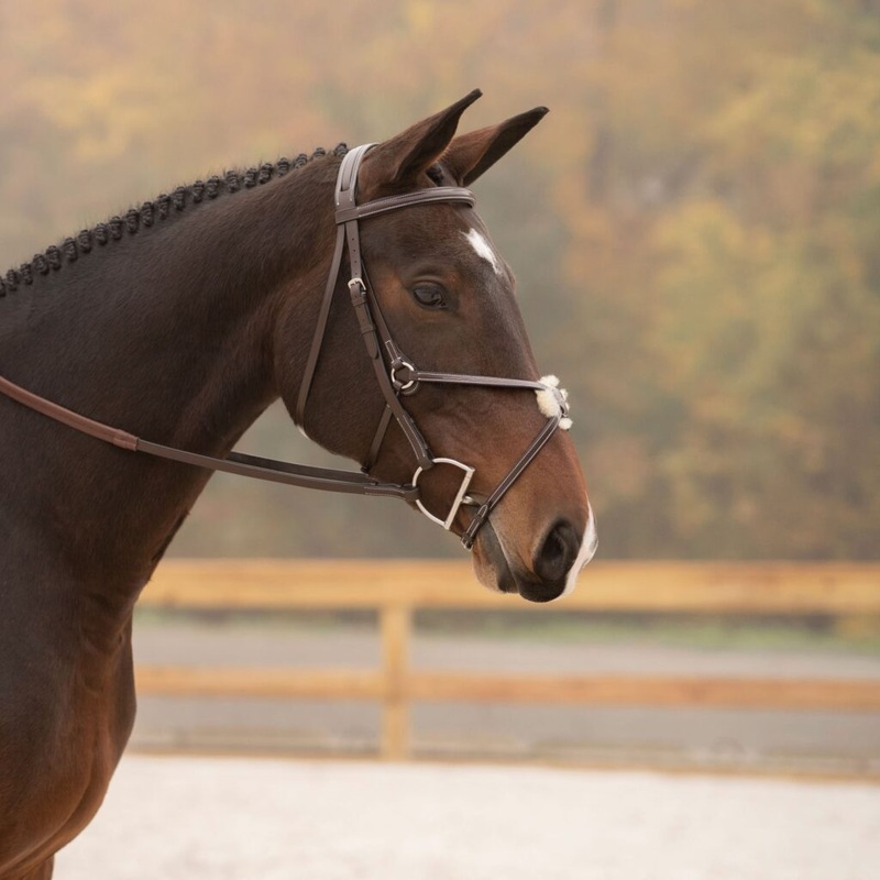 The Black Oak Cedar Figure 8 Bridle is designed to please both the hunter/jumper rider and the event rider with its flat, fancy stitched figure 8 noseband with rings, round raised 3/4 padded browband, and 5/8 cheek pieces. The Cedar design features a soft padded threaded crown that offers maximum poll comfort for the horse and padded flaps behind the noseband rings. Comes complete with 5/8 Rubber Reins. All hardware is stainless steel, with hook stud ends. This bridle is made in the finest drum-dyed leather.