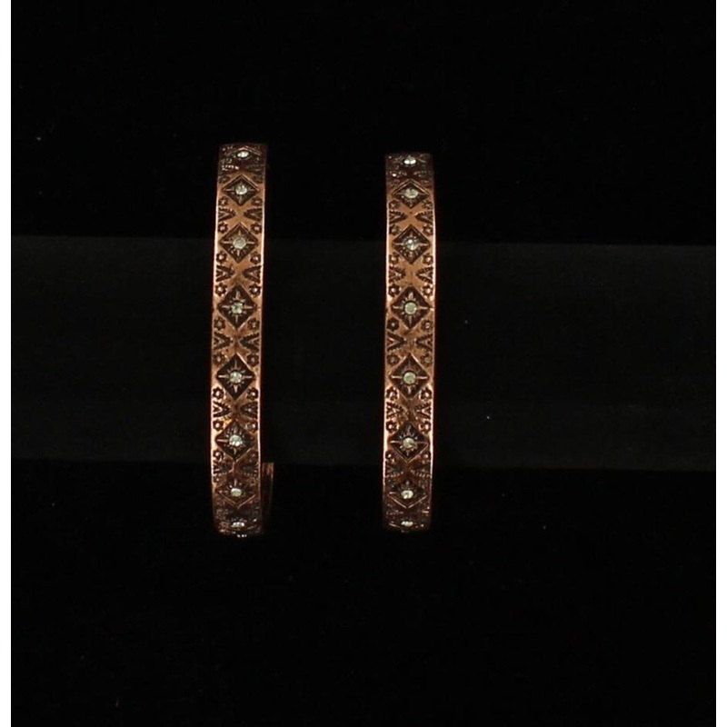 Stunning large hoop earrings with aztec and rhinestone design.Color:Copper