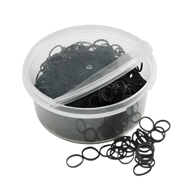 Pack of 800 bands in a convenient plastic container. Perfect for grooming totes and tack trunks.