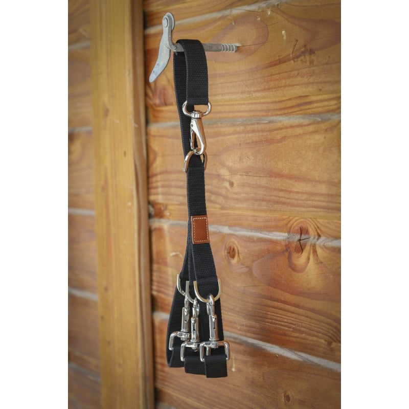 Paddock Bridle Rack – Whether at competitions or in the stables, you can hang your bridles with just one click of the snap hooks! Thanks to a simple system of nylon straps and snap hooks, you can effortlessly suspend your bridle parts wherever you need them. Highly durable, its an innovative, lightweight, and ultra-practical stable accessory.