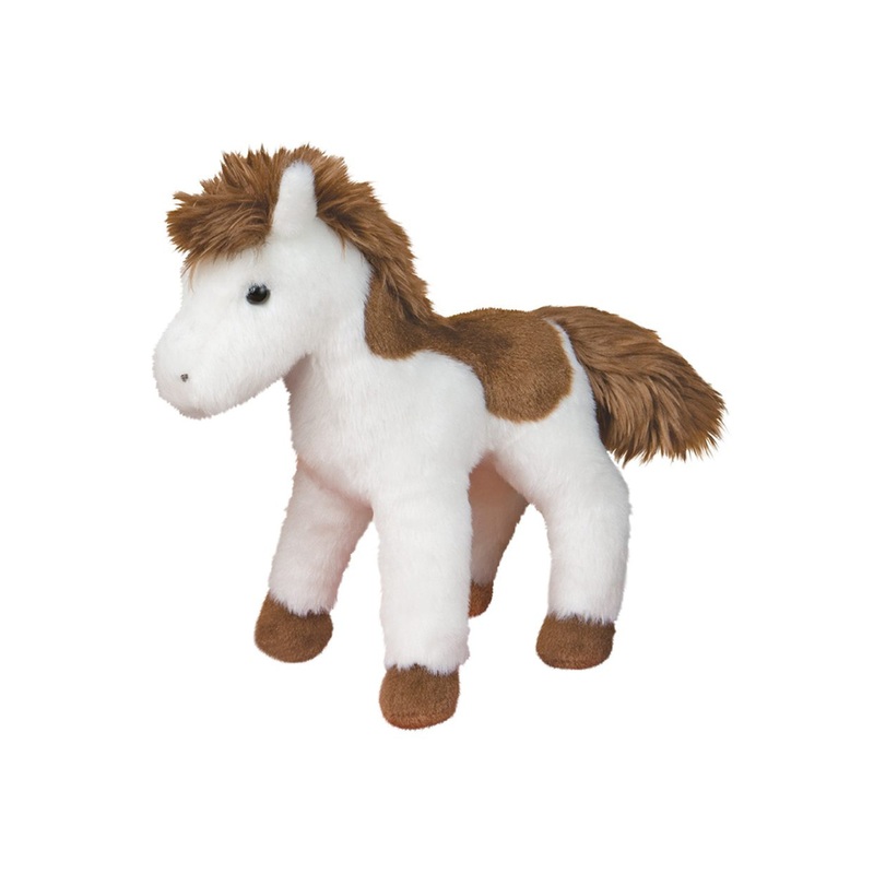 As sure footed and determined as they come, let Arrow Head the courageous plush Paint Horse lead the way on the next trail ride! This hardy Indian pony knows all the best paths over the rocky ground. A lively expression and stand up pose will make him a favorite when its time for imaginative play. His spotted pinto pattern is crafted with cuddly brown and white plush fur thats squeezably soft. Arrow Heads playful, coltish look can be attributed to his fluffy, chestnut colored mane and tail. An enticing Western adventure awaits! When it can be shared with a friend as gallant as this hardy Paint Horse stuffed animal, you wont want to let it pass you by!