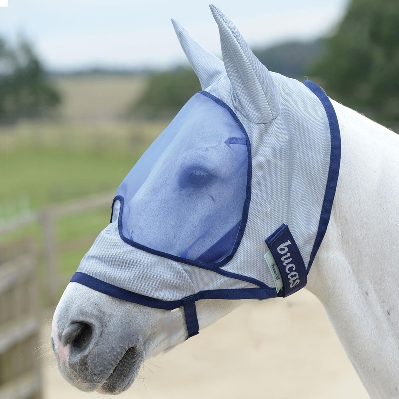 Lightweight fly mask offers super protection against insects and the sun. Reinforced darts help to keep the mesh fabric away from the horse’s eyes. Hook and loop closure on the jawbone and Snap-lock closure on the chin groove help to secure the mask in place. The polyester mesh fabric is wrinkle and abrasion resistant, and is easy to clean. Finished with strong, fade & stain resistant polypropylene trim.
