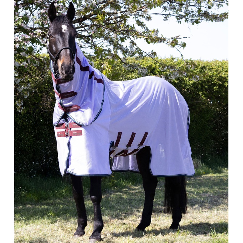 The Bug Buster Fly Rug with Detachable Neck Cover and Belly Flap has been crafted from a strong, yet breathable mesh fabric providing full body coverage, whilst allowing optimal airflow to keep your horses cool. Providing approx 70% UV protection, this fly rug with detachable neck ensures your horse stays shielded from the sun, whilst offering full head-to-tail coverage against biting flies, bugs and insects.