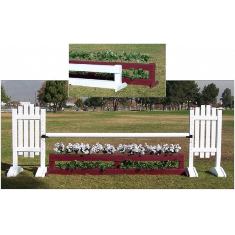 The traditional design of this free standing brush box creates an attractive way to fill any jump. With the realistic look of wood but lightweight mobility, this brush box is an important accessory for any course. The top rail is 18″ high, and if you add flowers or greens to the top rail it is about 24″ to the top of the flowers.