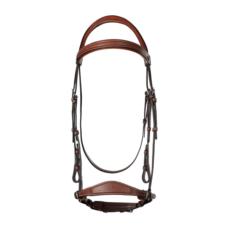 The Butet ranges archetypal sports bridle with a streamlined, minimalist finish. It is highly comfortable for the horse thanks to its anatomical headpiece and padding on the browband and noseband. The drop noseband improves the connection between the hand and mouth, facilitating contact. Reins sold separately.