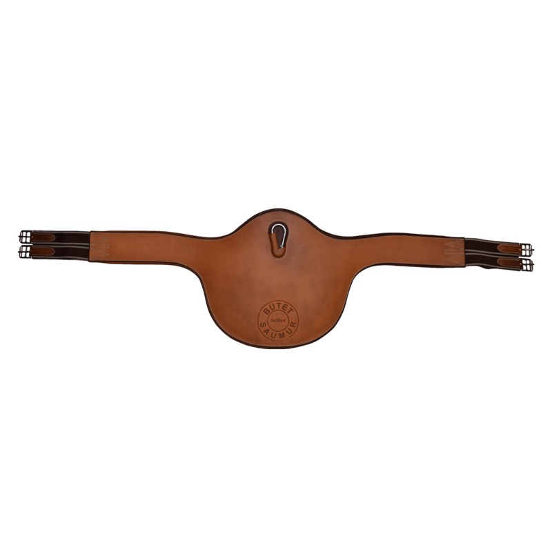 The Butet embossed ergonomic belly guard girth comes with a central snap hook with a protection cover, a D-ring on either side and four elastic straps at the ends. The ergonomic belly guard girth is recommended for jumping.