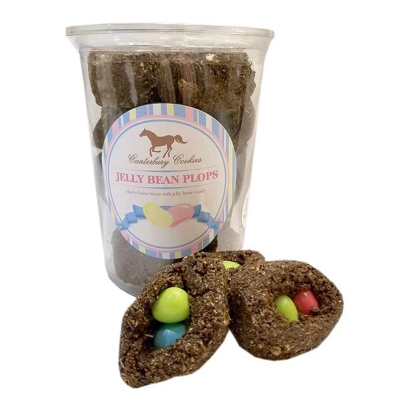 Canterbury Jelly Bean Cookies Horse Treat Plops – 20oz Our Canterbury Horse Cookies are sure to be your horses new favorite treat! These chewy treats are made from wholesome ingredients like bran, molasses and oats with flax added for a silky coat. -Easter Cookie includes Jelly Beans Flavor:Jelly Beans