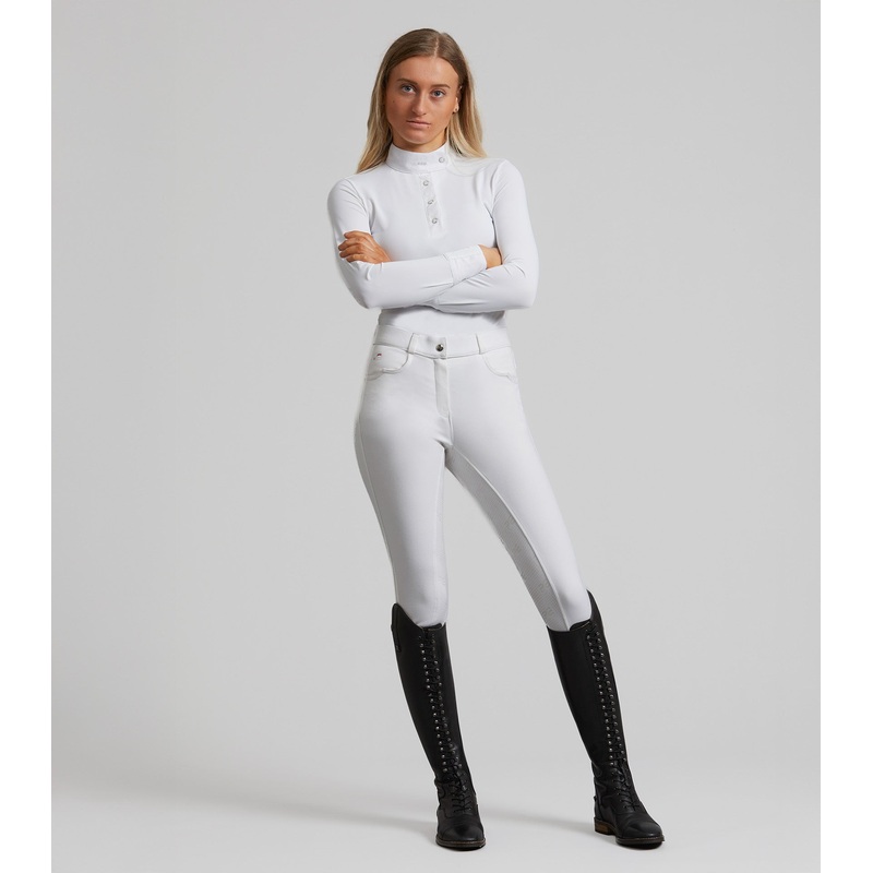 Crafted from four-way stretch fabrics offering complete flexibility for unrestricted performance.A full seat of branded silicone increases grip in the saddle and adds an element of further technical performance to the breech. Designed with two front pockets which add practicality, with a unique curved edge design for a subtleabstract touch. The standard-rise waist delivers a flattering fit and is completed with five traditional belt loops so you can include your favourite belt.