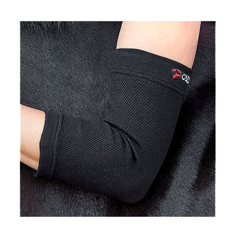 Made with woven ceramic particles that help increase circulation. The lightweight stretch material provides optimal support for the elbow and allows the brace to be worn comfortably under show shirts and riding coats.
