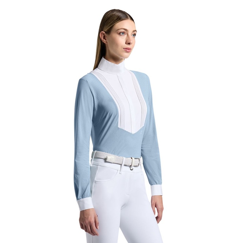Cavalleria Toscana Perforated Long Sleeve Competition Shirt With Bib – Blue Fog