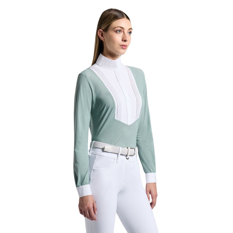 Cavalleria Toscana Perforated Long Sleeve Competition Shirt With Bib – Teal