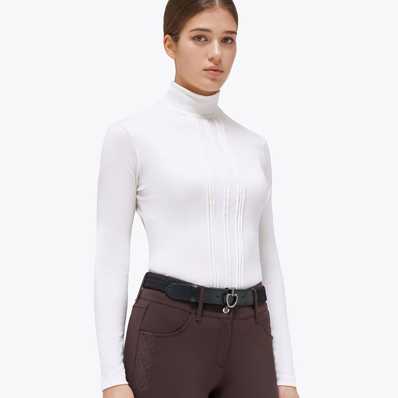 With a stylish ‘quiet luxury’ look and elegant front pleats, this versatile piece is perfect for everyday training or even as a winter competition shirt.