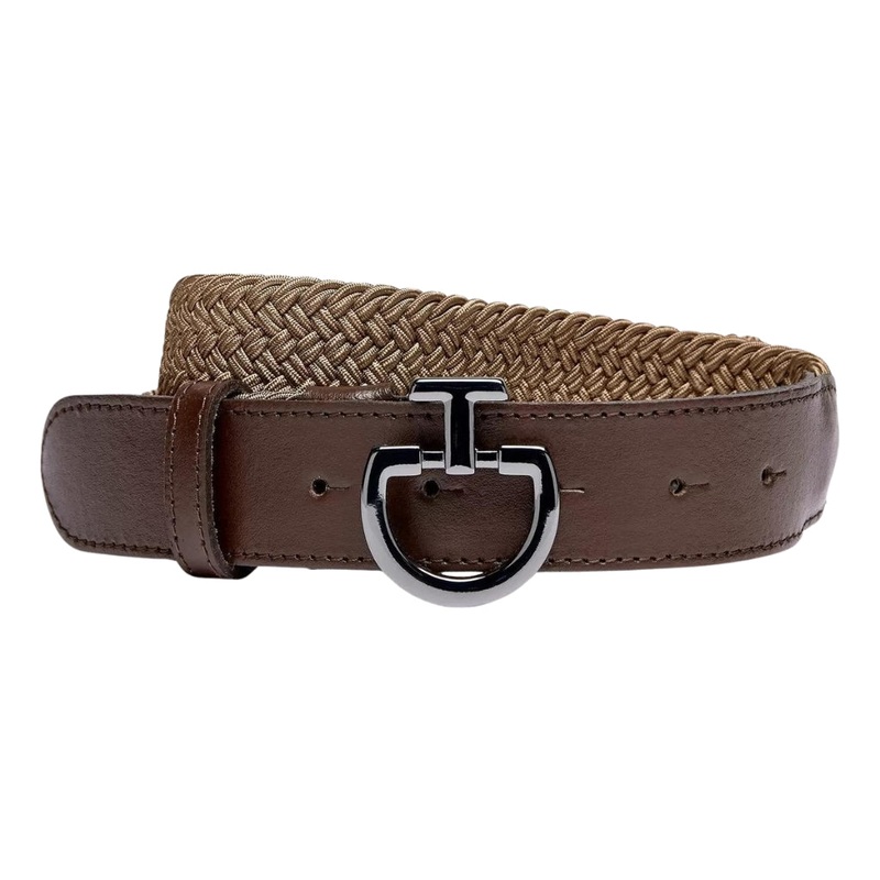 This Cavalleria Toscana women's belt is made from elastic rayon and is created with leather strips woven over elastic. It has a smooth leather tip and a metal clasp with CT logo. This belt is thin and elastic so it won't feel bulky or restrictive while mov