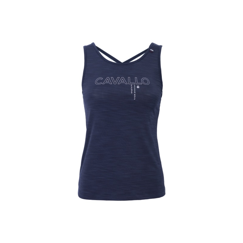 Cavallo Dora Ladies TopBeautiful & fits lovely, this top screams summer.Not on the generous side so can go up a size.Airy ladies top made of functional jersey.Fancy back design with crossed straps.Glittering Cavallo artwork below the crossed ribbons on the