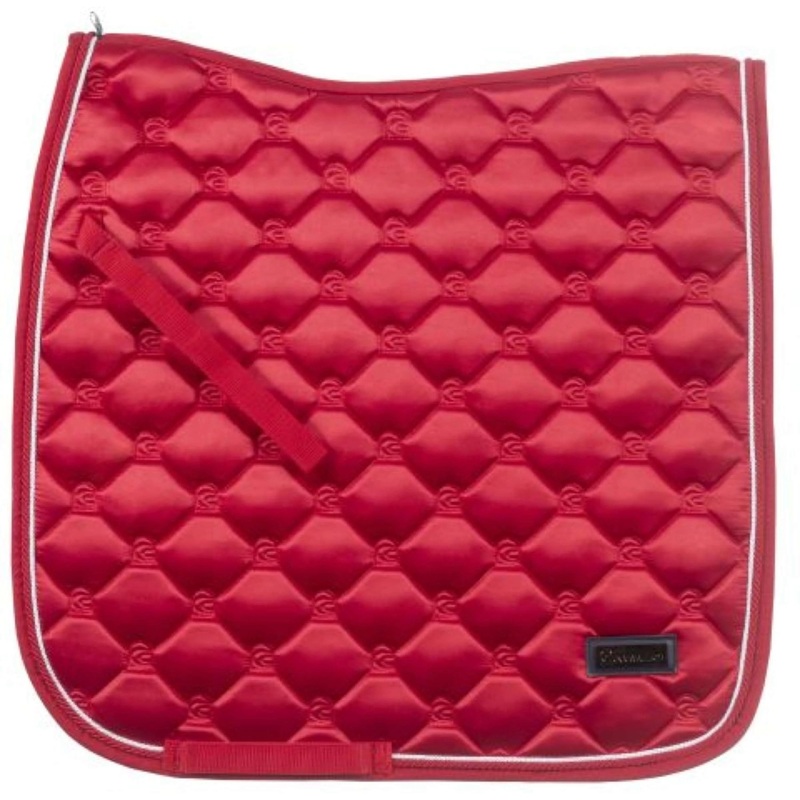 The Cavallo Hanaya Dressage Saddle Pad is a stunner with its shimmering outer material, elaborate diamond quilt pattern and double rows of cording trim. Contoured for fit along the topline and comfortably padded, it stays secure with both girth loops and adjustable hook-and-loop billet straps. A mesh lining promotes airflow. Adorned with a gunmetal Cavallo plaque.