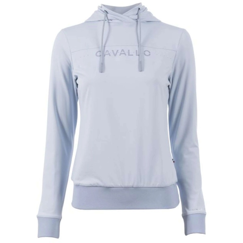 Lightweight, bi-elastic hoodie made from functional fabric. With hood that can be fastened at the back and with individually adjustable drawstring. Made from slightly brushed, bi-elastic functional fabric for a comfortable feel. With elasticated ribbed fabric on the sleeves and hem for extra comfort. Cavallo laser-cut artwork in the neckline area decorated with sparkling crystal stones in silver look. Cavallo stirrup laser-cut artwork with sparkling crystal stones in silver look at the back of the hood. All laser-cut artwork is underlaid with tonal mesh and outer fabric and is therefore not translucent.