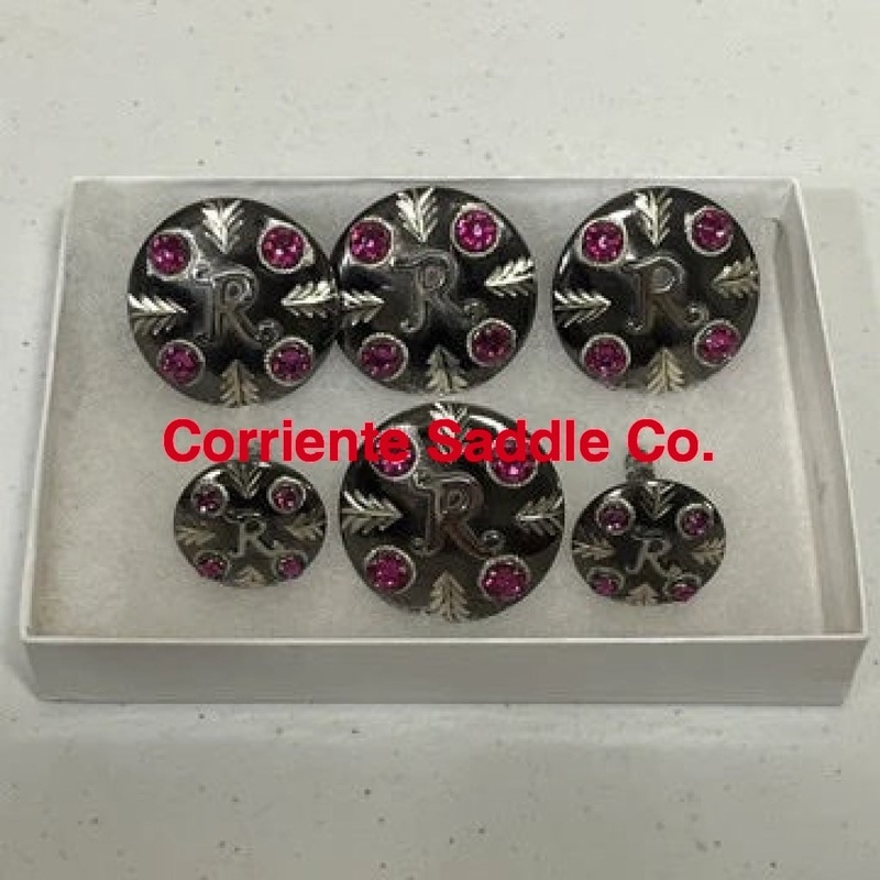 Bargain items are in stock and ready to ship at a discounted price. Each item is sold as is.Please Call Us to Purchase 915-525-9009 or 575-874-33881 Set of cursive "R" Conchos4- 1 1/2"Screw In2- 1" Screw In