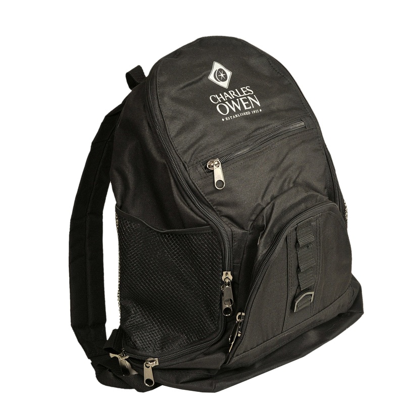 Durable and convenient, these backpacks are stamped with the Charles Owen name- you KNOW that means a quality product! Great for transferring things to and from the barn, or for any time you need a backpack!Color:BlackSize:One Size