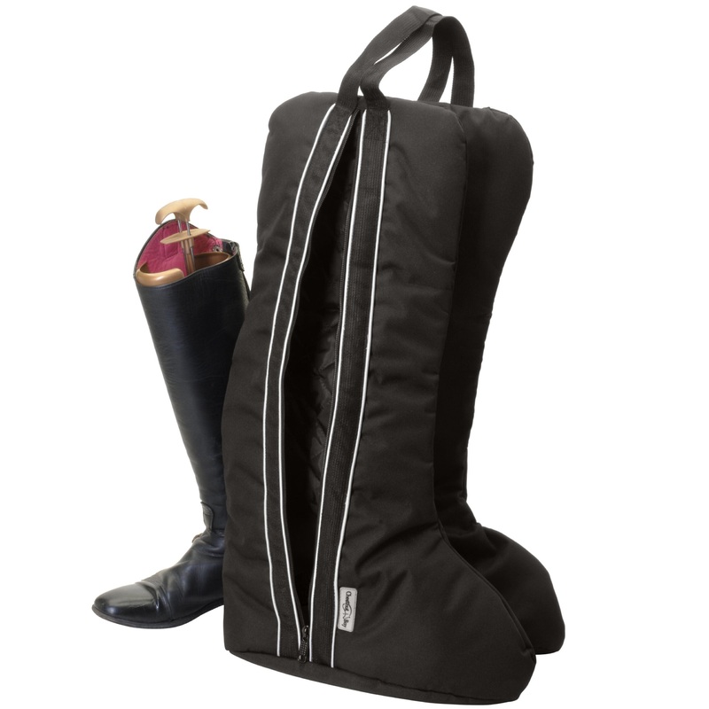 Features include separate bags to avoid scuffs and marks, a top handle for easy carrying, and full length entry zippers. Handsome contrast webbing and piping add a touch of equestrian style.
