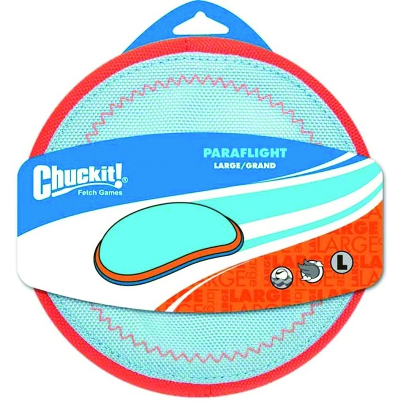 Enjoy Chuckit! flying fun with this soft and flexible floating flyer, featuring a gradual descent flight pattern and high visibility.Size:Large