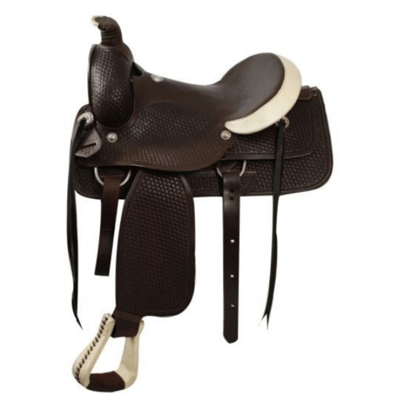 This Circle S Saddle comes with a 5-year roping warranty and features a rawhide-wrapped horn and cantle with 4″ rawhide-covered stirrups for easy entry and exit if you have to dismount to tie a calf. This saddle also comes complete with a latigo tie strap and off billet.