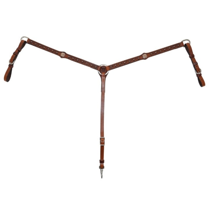 The Circle Y Copper Spots Shaped Breast Collar is a 1" shaped breast collar that includes attractive copper spots.Color:MahoganySize:1