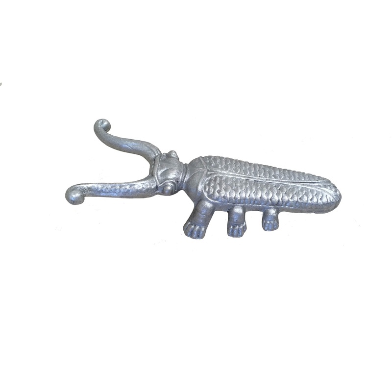 The Colorado Saddlery Aluminum Beetle Boot Jack is made of polished aluminum and is in the shape of a beetle.